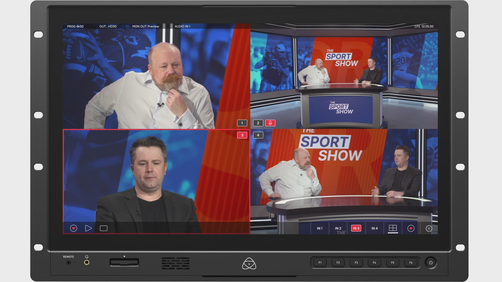 Rack mountable 19-inch, 4K HDR DCI-P3 monitor-recorder-switcher for live production, video village and broadcast